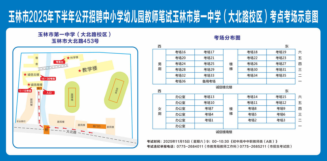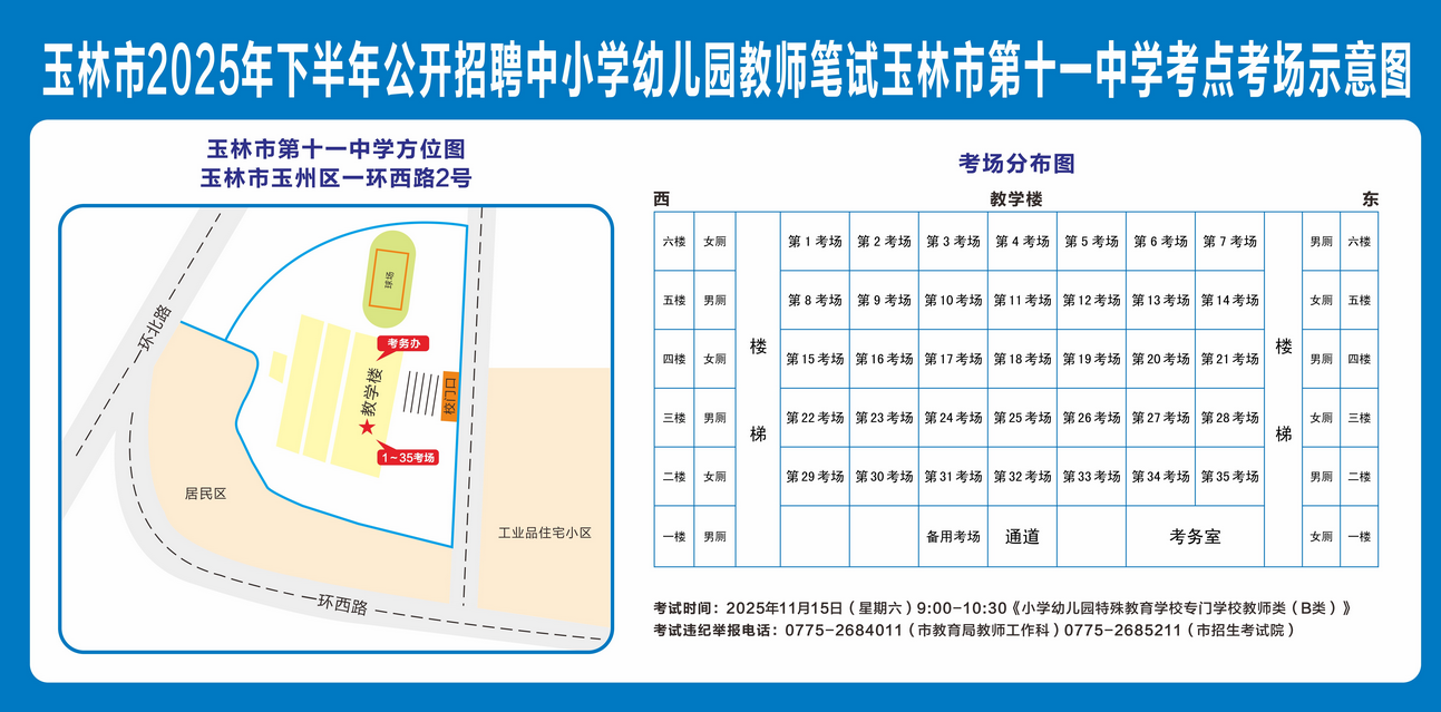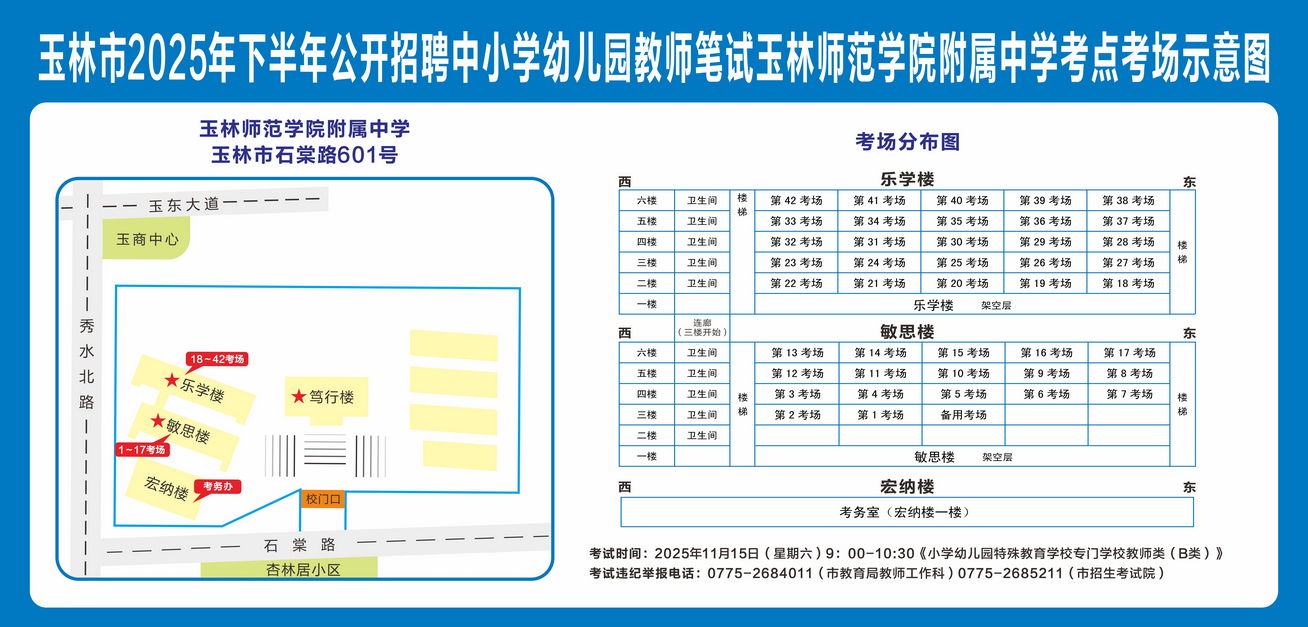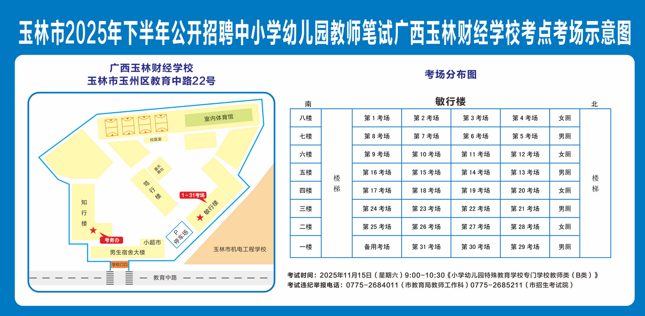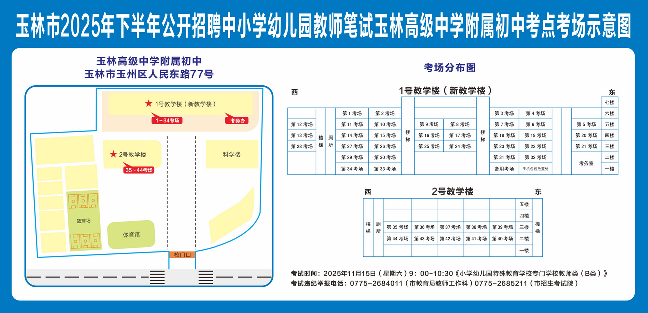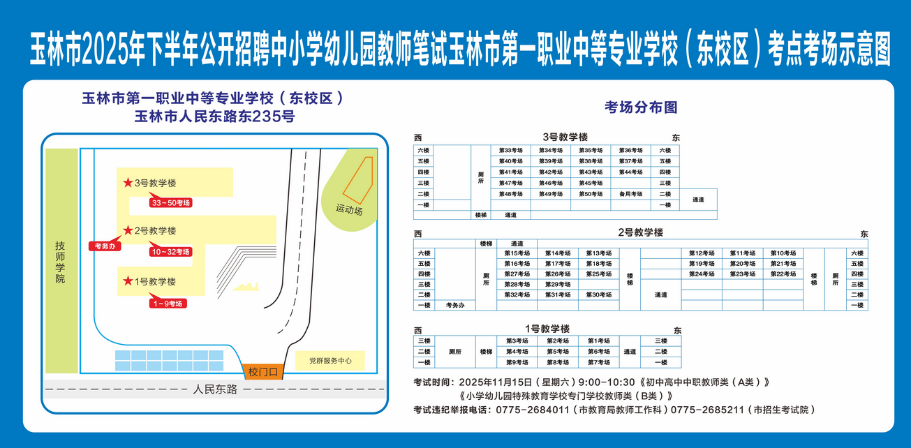 玉林市2025年下半年公开招聘中小学幼儿园教师笔试将于11月15日举行,现就有关注意事项提示如下,请广大考生做好应试准备工作,准确掌握考试时间、考点地址及相关注意事项。
