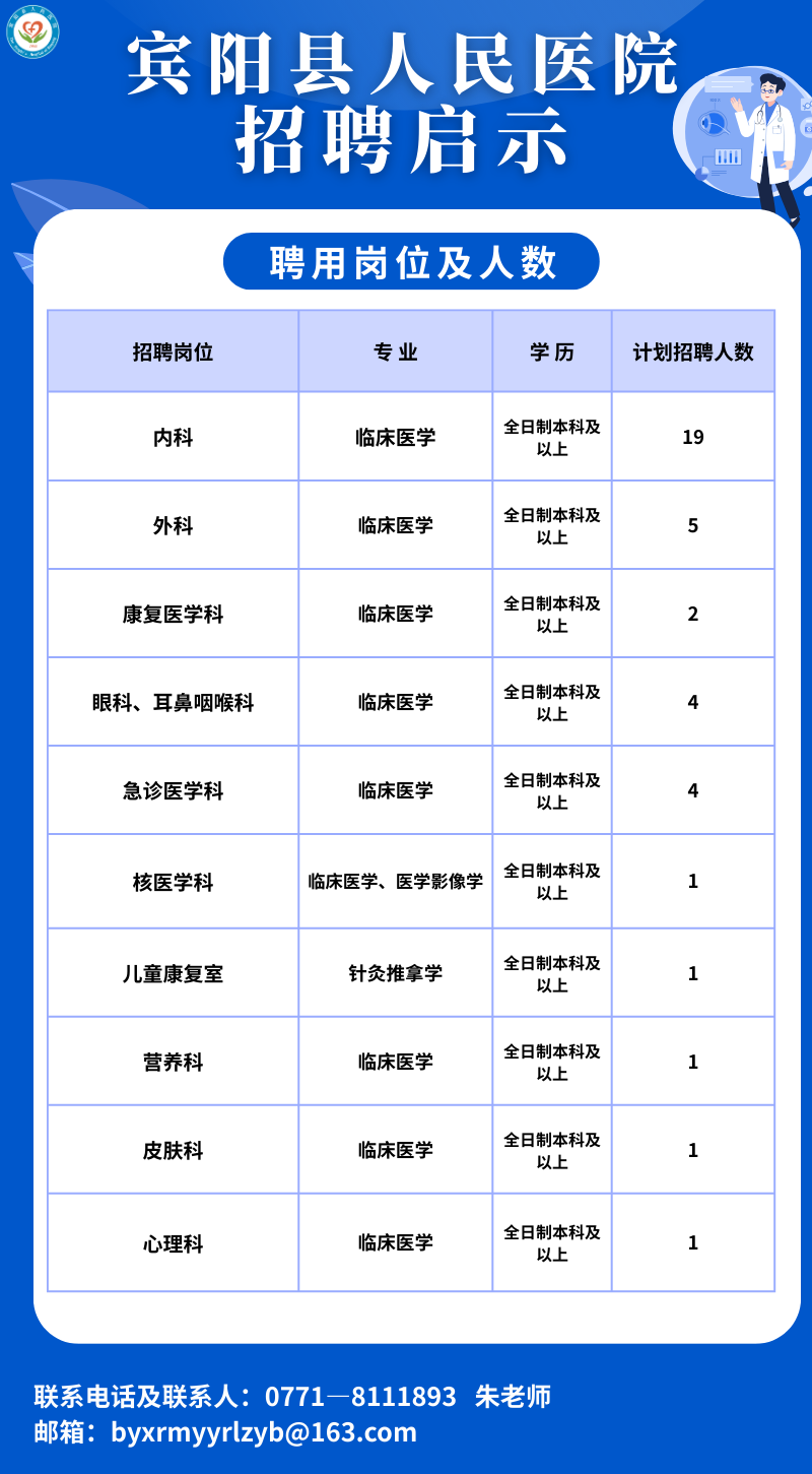 宾阳县宾州镇新宾仁爱街137号  宾阳县人民医院人力资源部