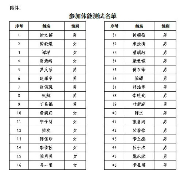 3.参加人员:免体能测试的退役军人(详细名单见附件2)、完成体能测试合格的考生。