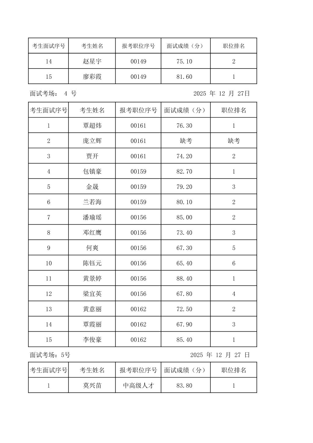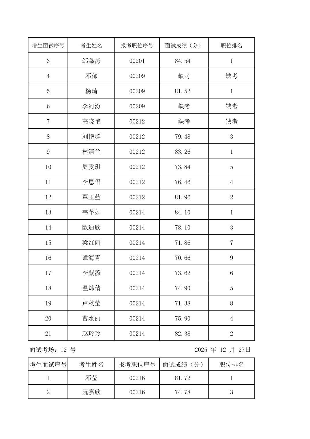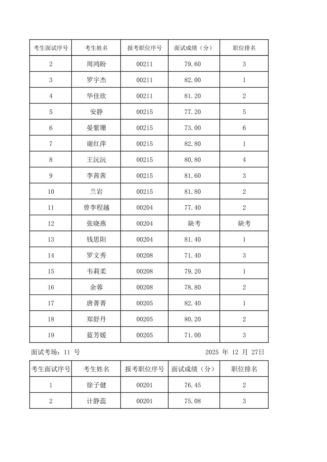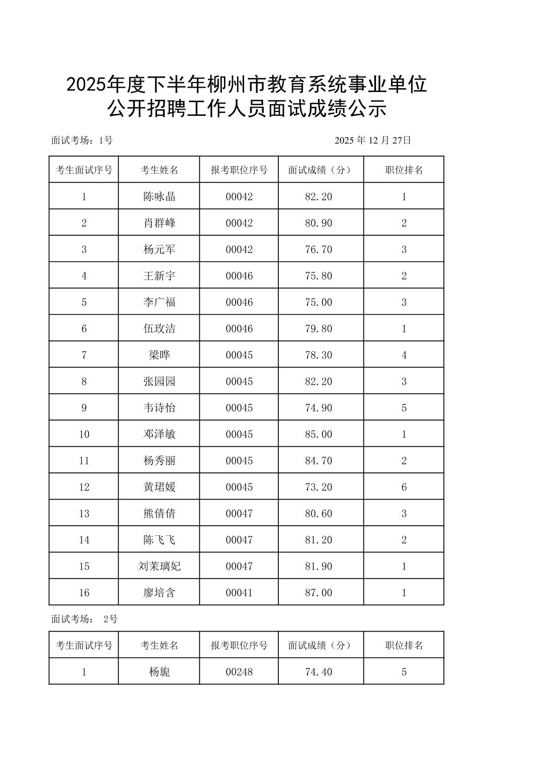 2025年度下半年柳州市教育系统事业单位公开招聘工作人员面试成绩公示