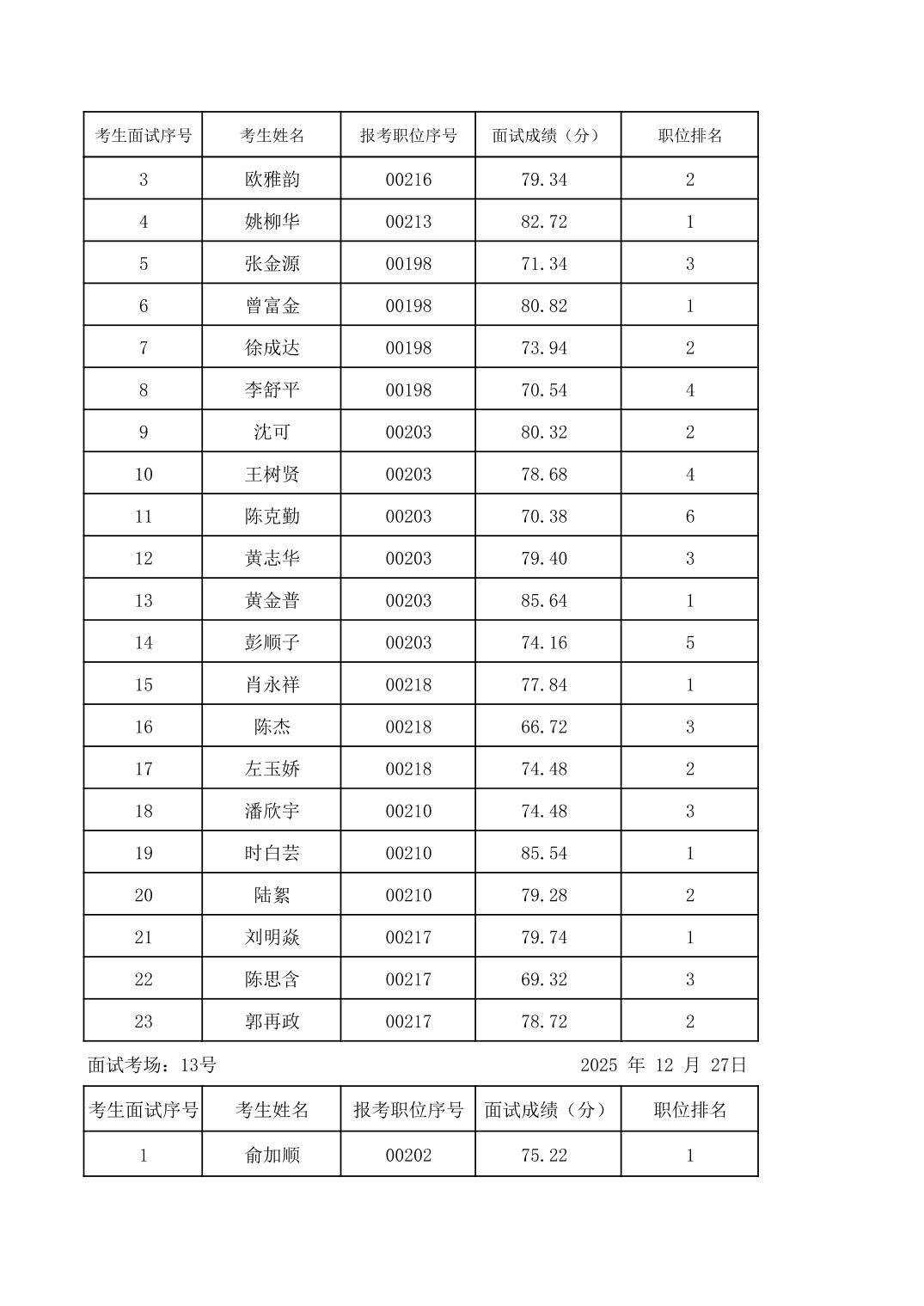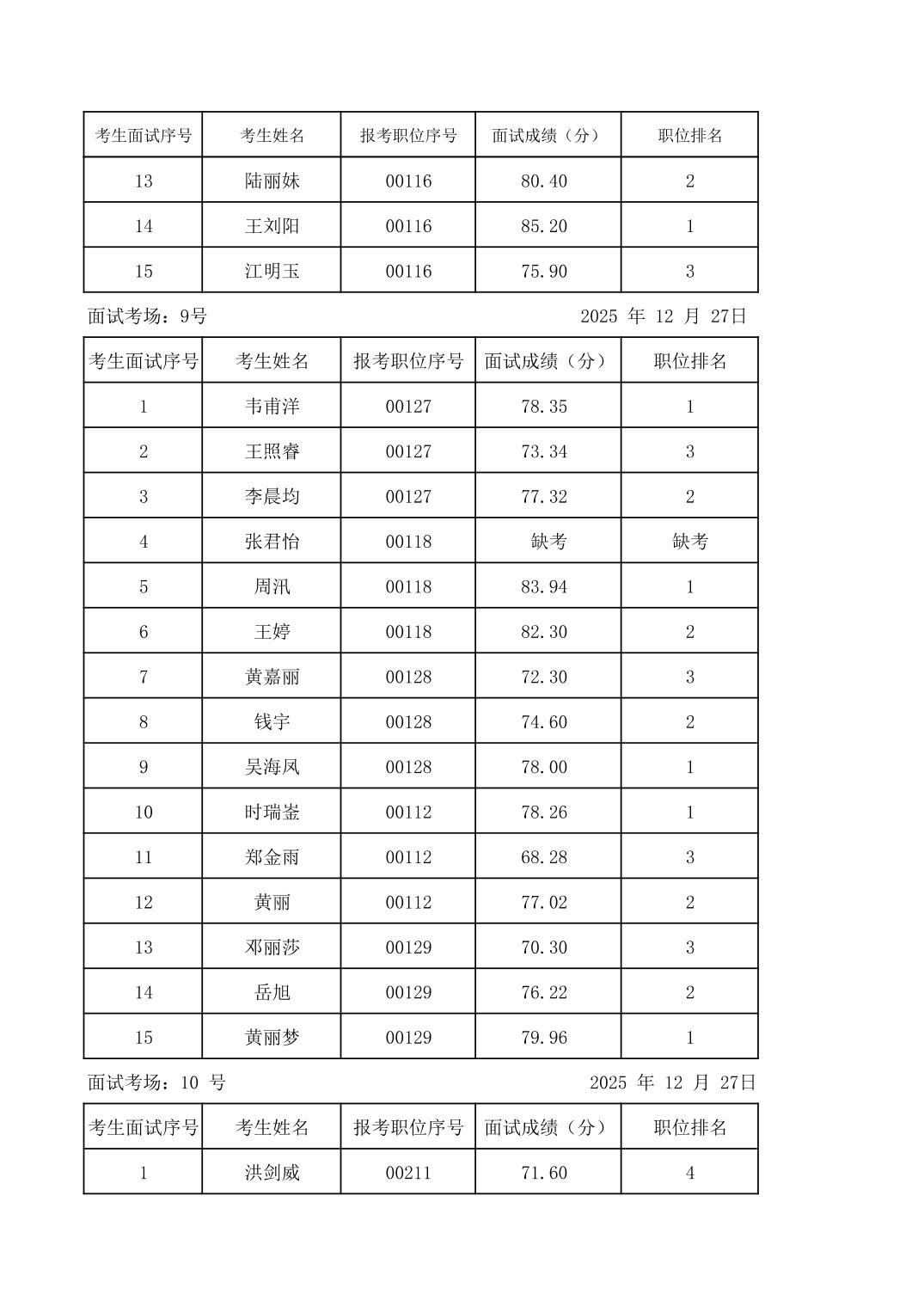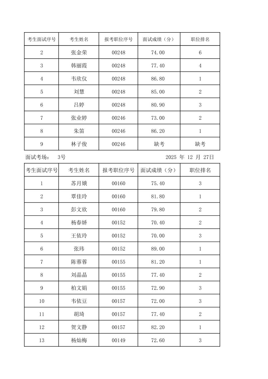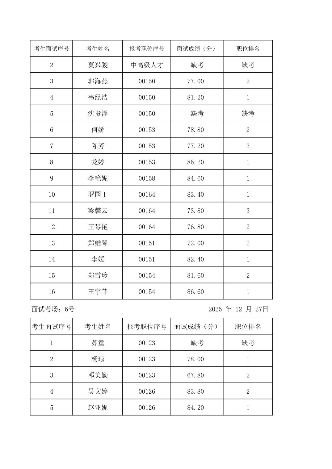 2025年度下半年柳州市教育系统事业单位公开招聘工作人员面试成绩公示