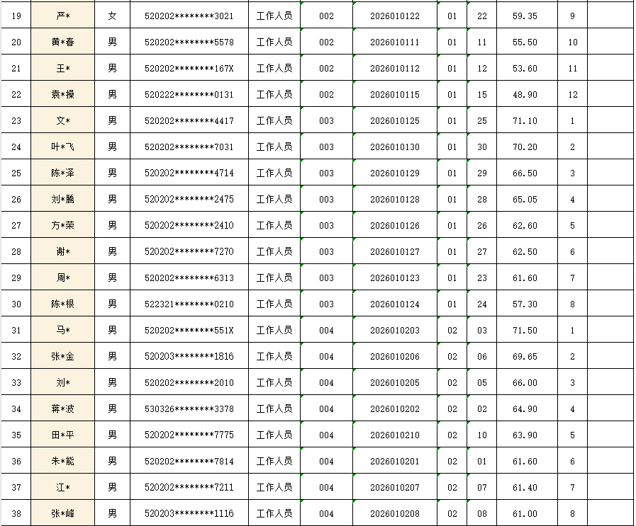 盘州市教育局机关所属事业单位2025年公开考调工作人员笔试工作已结束,现将笔试成绩予以公示(详见附件),公示期为2026年1月14日—2026年1月19日。考生若对成绩有异议,可持本人身份证、准考证(原件和复印件)于成绩公示期内到盘州市教育局按照有关规定申请查分,公示结束将公布进入面试人员名单和面试公告,请随时关注盘州市人民政府网和盘州教育宣传微信公众号平台查看。