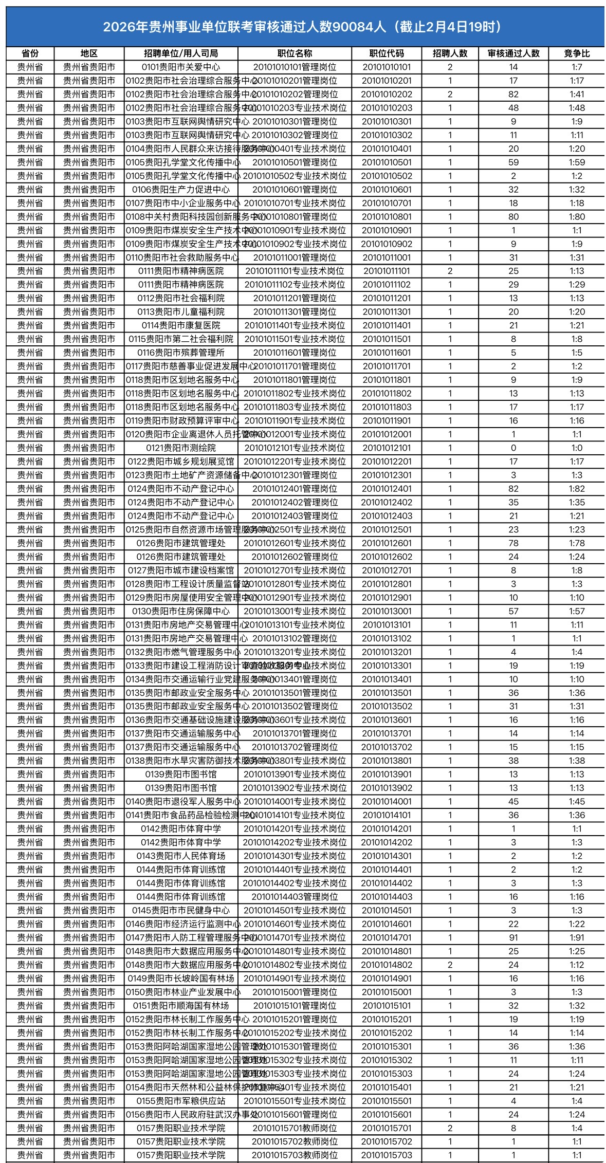 2026年贵州事业单位联考审核通过人数90084人(截止2月4日19时)..xlsx