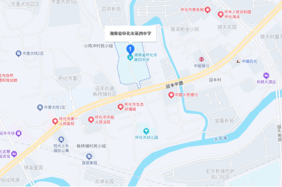7.怀化市第四中学考点,地址:湖南省怀化市鹤城区迎丰中路411号,公交车次,1路,7路,15路,21路,39路,88路,99路,101路,109路,具体地图位置如下: