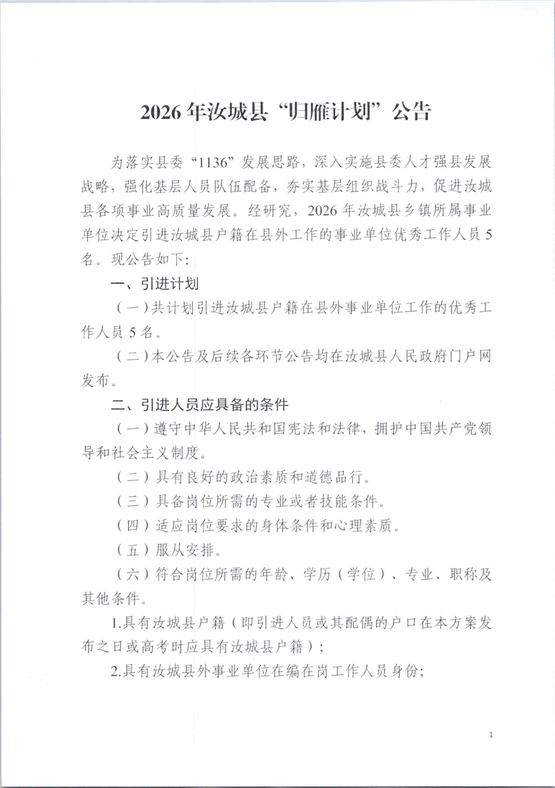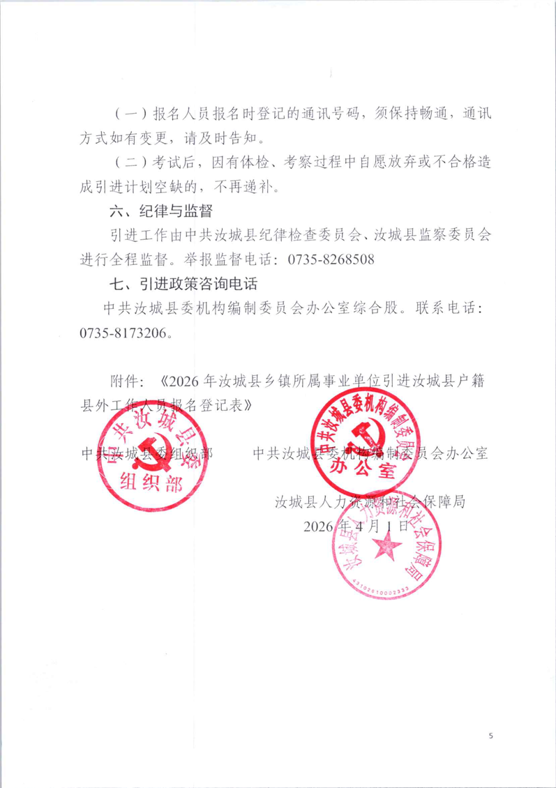 2026年湖南汝城县"归雁计划"公告(5人)