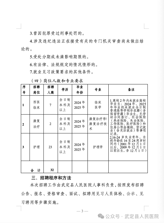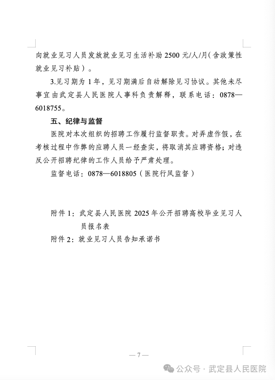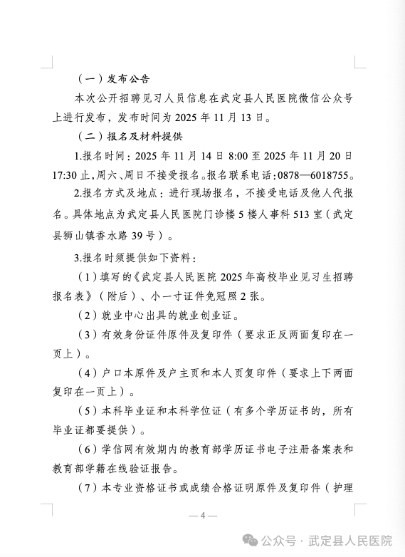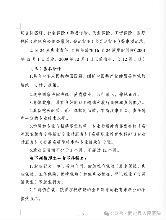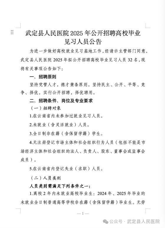 2025年武定县人民医院公开招聘高校毕业见习人员公告(32人)