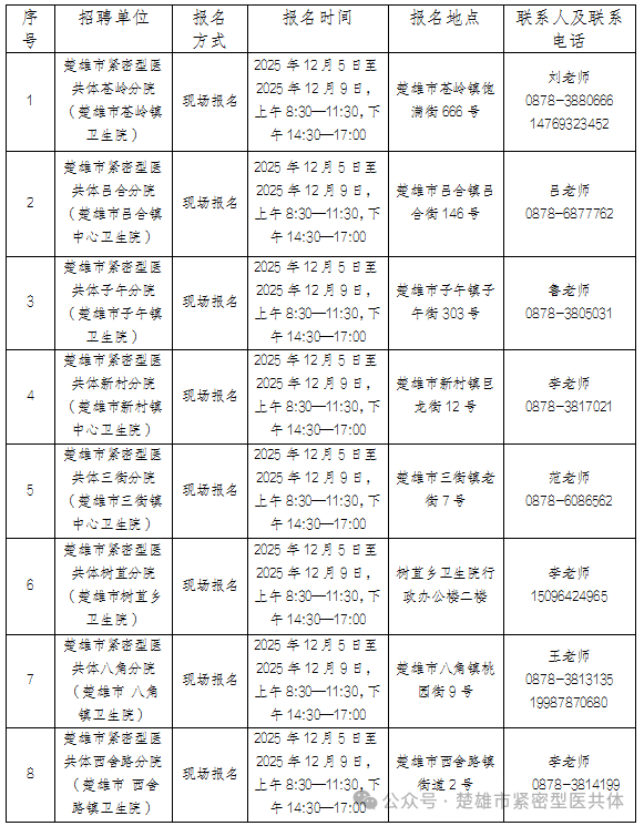 2025楚雄州楚雄市紧密型医共体第二批编制外职工招聘公告(17人)