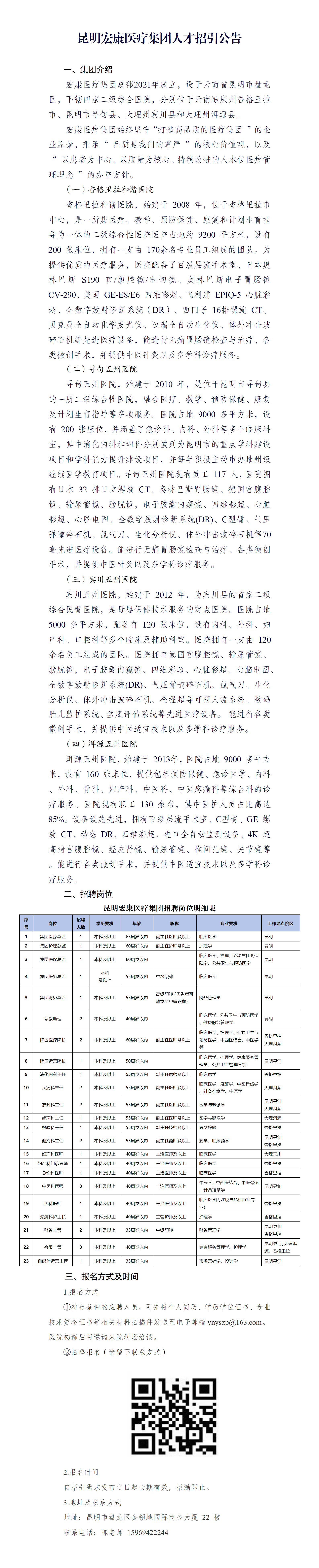 昆明宏康医疗集团人才招引公告(30人)