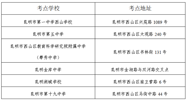 一、考试时间及科目 2026年3月14日上午 9:00-11:00 行政职业能力测验 2026年3月14日下午 14:00-16:30 申论 考生必须携带纸质准考证和有效期内的本人身份证原件(包括但仅限于:居民身份证、临时居民身份证、公安机关出具的带照片的临时身份证明或带照片的户口/户籍证明)参加考试,两证不全或身份信息不一致的,一律禁止入场。入场后请认真核对考点、考场和座位号,在指定座位参加笔试。笔试开始30分钟后禁止入场,笔试期间不得提前交卷、离场。 二、考点设置情况 此次笔试昆明市西山考区共设有6个考点,具体为: 1 昆明市第一中学西山学校 具体地址:昆明市西山区兴苑路1089号 2 昆明市第五中学 具体地址:昆明市西山区大观路240号 3 昆明市西山区教育科学研究院 附属中学(粤秀中学) 具体地址:昆明市西山区书林街131号 4 昆明金岸中学 具体地址:昆明市金湖路与双河路交叉点 5 昆明润城学校 具体地址:昆明市西山区前卫营路6号 6 昆明市第十九中学 具体地址:昆明市西山区马街中路44号 三、考生提前注意事项 (一)请考生按照准考证上的考点名称及地址,于考前一天熟悉考点学校位置和交通路线,根据自身实际合理选择并提前联系预订住宿。考生可于考前一天(3月13日)17:00后到考点门口查看考点学校的考场示意图,但不得进入考点。 (二)请考生充分考虑好交通、天气等因素合理选择交通方式,安排足够的出行时间,建议在考试开始前60分钟进入考点学校,避免因交通拥堵、不熟悉路况等原因影响准时应考。 (三)请广大考生和送考人员自觉遵守文明公约,自觉维护交通秩序,服从和配合交警的疏导和指挥,以免造成交通拥堵。 四、准考证打印时间与方式 2026年3月9日9:00至开考前登录云岭先锋网云南省公务员专栏登录报名系统(点击文末阅读原文可进入报名系统),通过点击系统导航菜单的“打印准考证”选项,可进入准考证打印页面打印准考证。请考生提前打印好准考证,并认真仔细阅读准考证上的注意事项。 预祝各位考生朋友考试顺利!