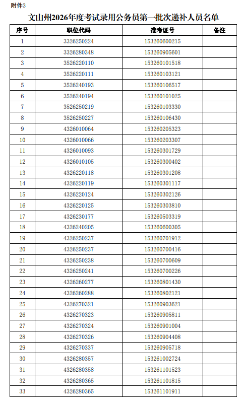 3.文山州2026年度考试录用公务员第一批次递补人员名单